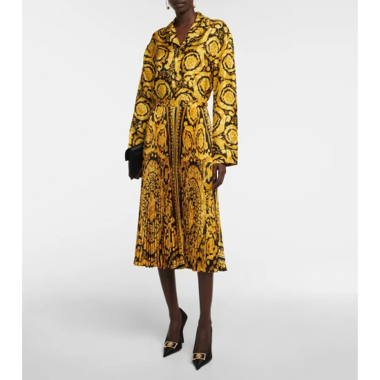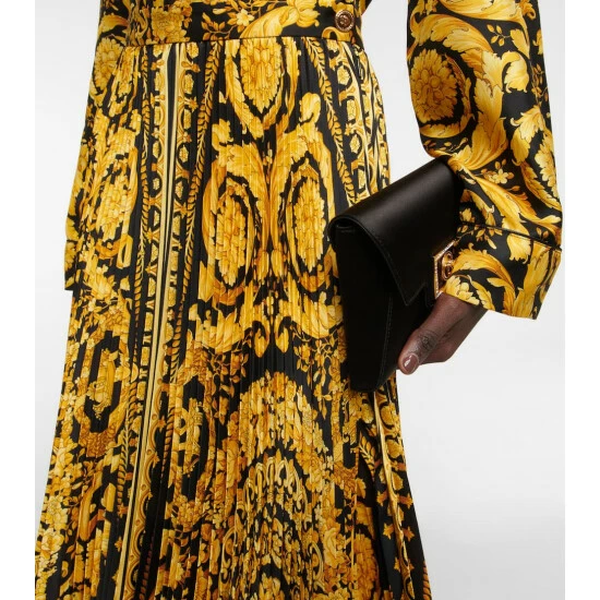 Versace’s Baroque-inspired motifs recall the intricate ornamentation of the 17th century. Decorating this midi skirt, the Barocco pattern is brought to life with a dimensional pleated silhouette that forms an A-line fit.
