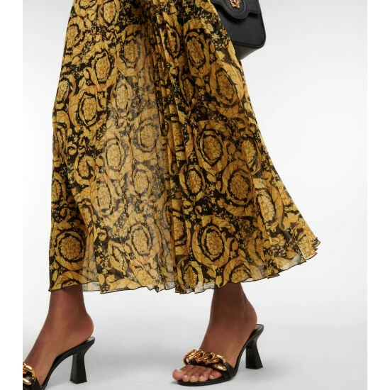 These pleated pants from Versace are made from georgette in the brand’s iconic Barocco print. They’re shaped into a wide-leg silhouette and feature a high-rise Greca-jacquard waistband.