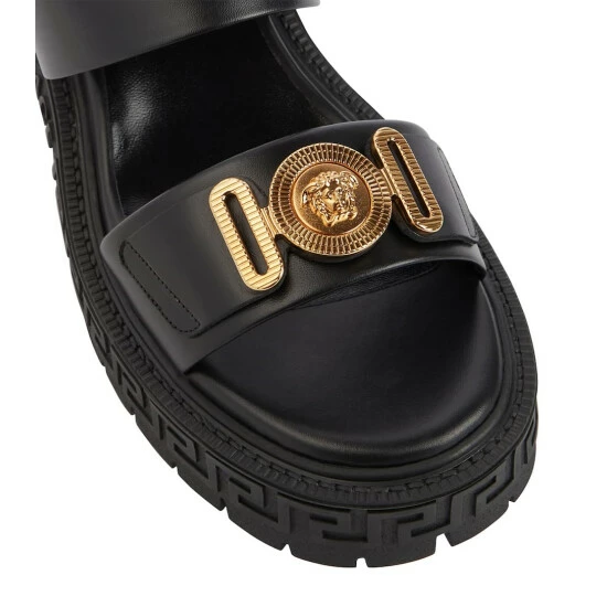 Opt for chunky styles to add contrast to your looks, like the Biggie Medusa sandals from Versace. Made in Italy from supple leather with Medusa Biggie hardware, the pair sit atop Greca-stamped rubber soles.