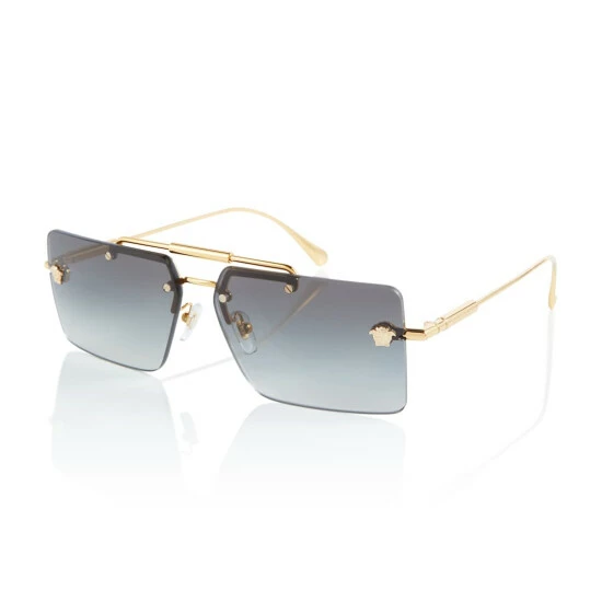 Inspired by Greek mythology, the Medusa head has become the ultimate signifier of the house of Versace. This frameless style has browline detailing and the signature motif on the rectangular lenses.