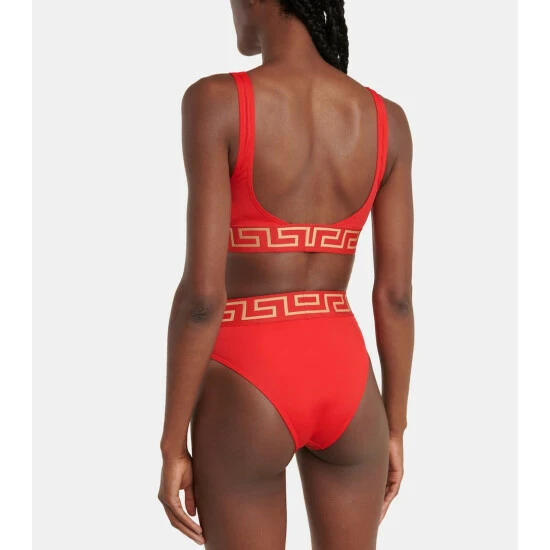 These Versace bikini bottoms feature the brand’s signature Greca Border. They’re cut to a high rise and have high-cut legs. Wear yours with the matching bikini top.