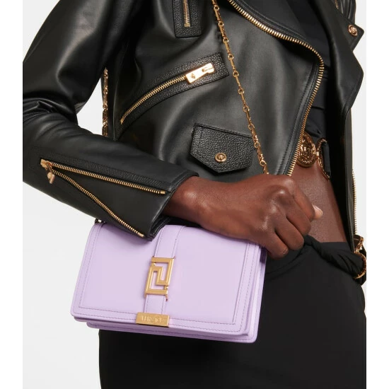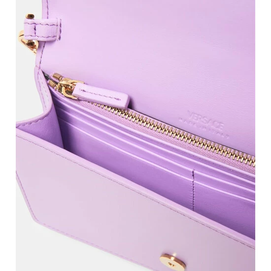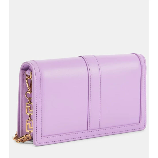 Your special events calendar deserves pieces like the Greca Goddess wallet on chain from Versace. This style is made from purple leather and features a detachable Greca chain.