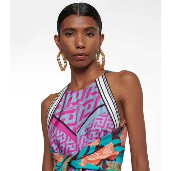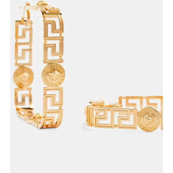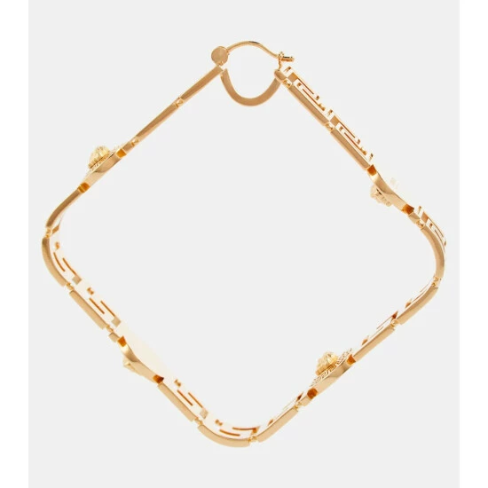 These Versace hoop earrings have a square shape and feature the house’s Greca pattern. They’re made for pierced ears and have a gold-toned finish.
