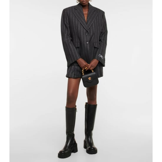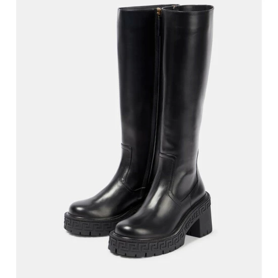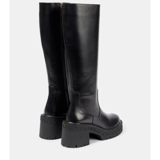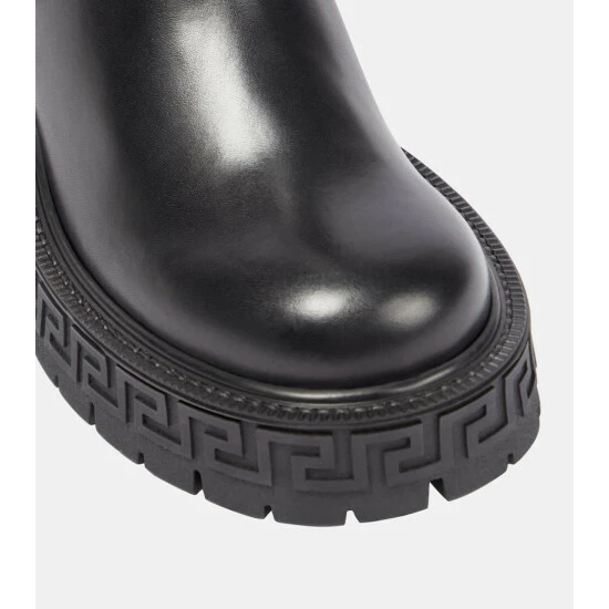 Versace’s Greca boots are made from smooth leather, and feature logo detailing at the rubber soles.