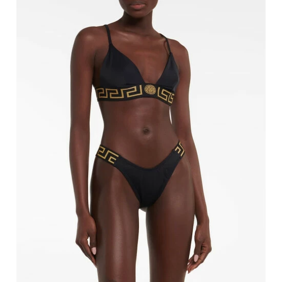 Add an ornate touch to your poolside edit with these black bikini briefs from Versace. The pair is made from stretch-swim fabric that provides a sculpting fit and comes trimmed with the house’s Greca motif.