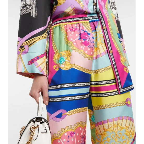 Cut with a high rise and wide legs, these palazzo pants from Versace make a breezy summer staple. They’re made from silk twill with the colorful I Ventagli print, an elasticated waistband, and slit side pockets.