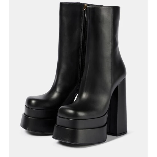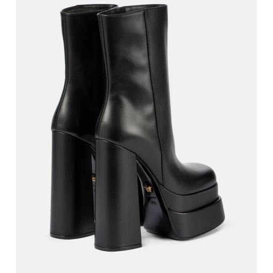 These ankle boots from Versace are made from soft black leather. Set on platform soles with tall platform heels, they secure with practical side zip fastenings.