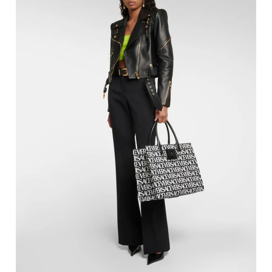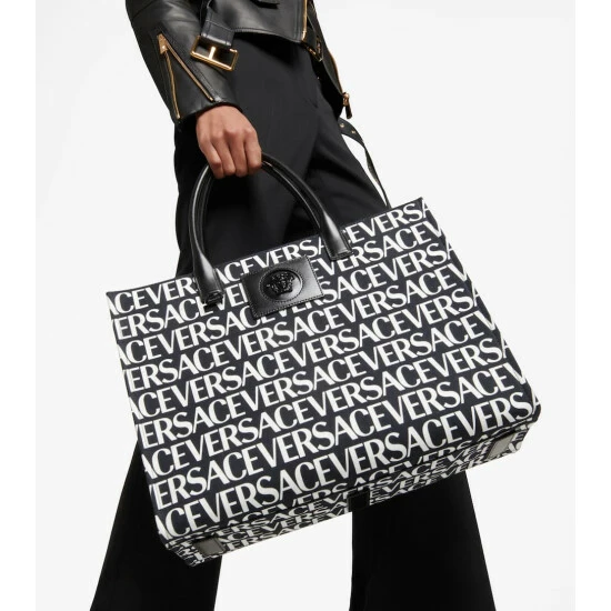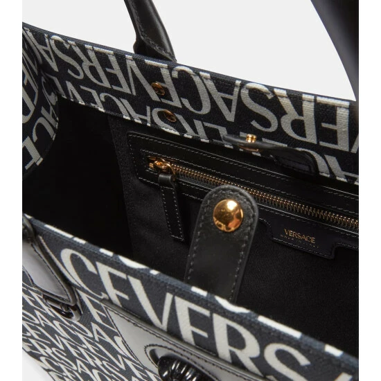 Inspired by Greek mythology, the Medusa head has become the ultimate signifier of the house of Versace. Appearing on this cotton canvas tote bag, it’s complemented by an all-over logo print and leather top handles.