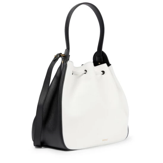 This bi-color bucket bag from Versace will make a glamorous companion – day or night. Crafted in Italy from supple leather, it’s complete with La Medusa hardware and a golden chain strap.