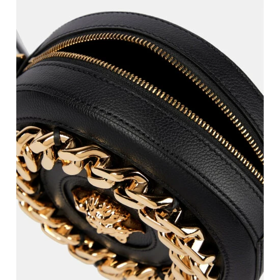 Versace’s La Medusa camera bag is accented with a label-characteristic symbol – the same found at the brand’s first headquarters in Milan. This leather design is detailed with a gold-tone chainlink design at the front for added edge.
