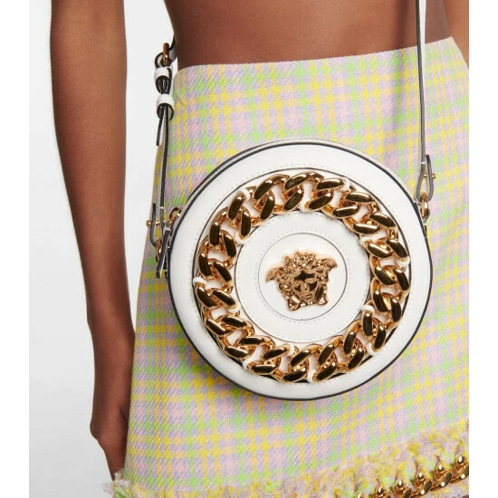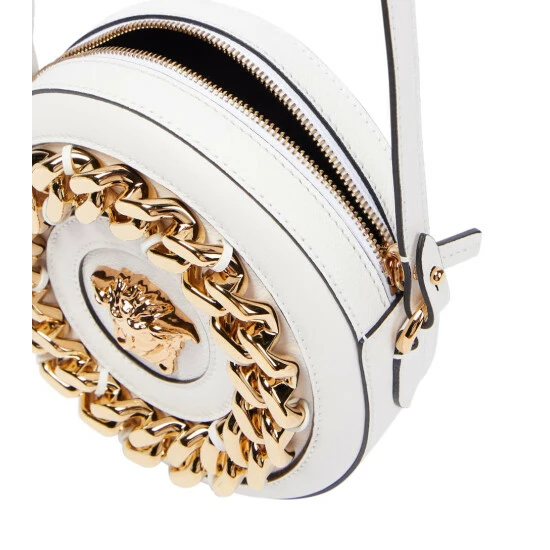 Versace’s La Medusa camera bag is accented with a label-characteristic symbol – the same found at the brand’s first headquarters in Milan. Made from leather, it has gold-tone chainlink detailing and an adjustable shoulder strap.