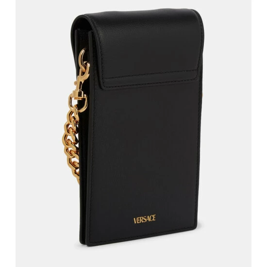 Versace’s La Medusa phone pouch is a stylish way to keep your essential device safe. Made from grained leather, it has a gold-tone Medusa plaque and chainlink shoulder strap.