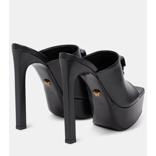 Versace’s La Medusa sandals are set atop towering platform soles and high heels. Made from calf leather, they’re adorned with tonal Medusa plaques.