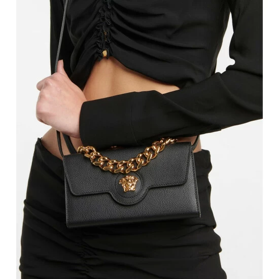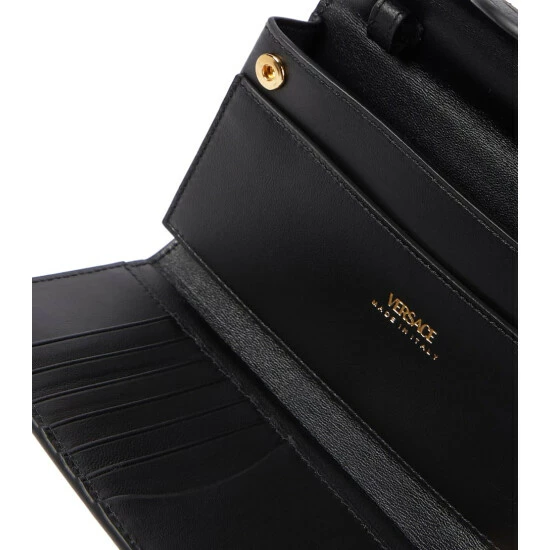 La Medusa wallet on chain from Versace will come in handy when all you want to bring is the essentials. Made from grained leather, it features a signature gold-toned Medusa plaque and chain top handle.