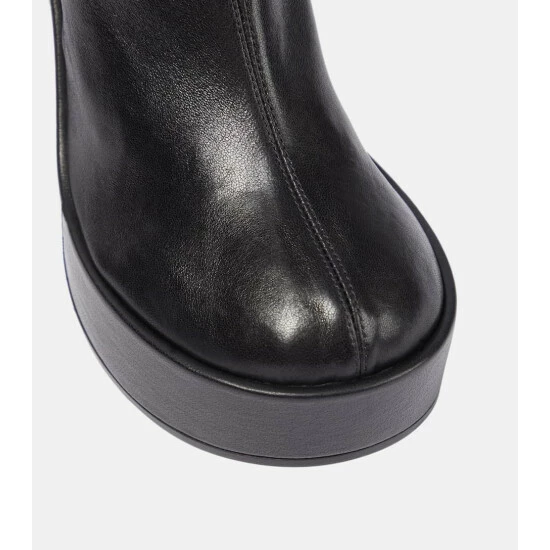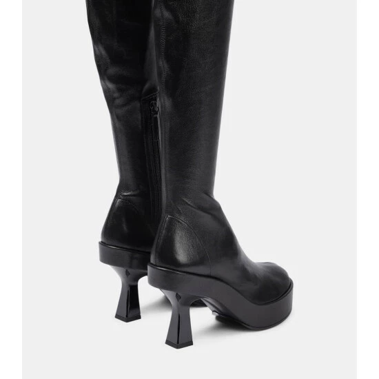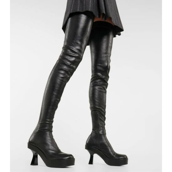 These over-the-knee boots from Versace are not for the faint of heart. Italian-made from stretchy nappa leather, the second-skin design rests on pyramidal heels and rounded platform soles.