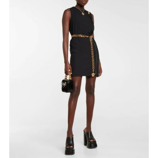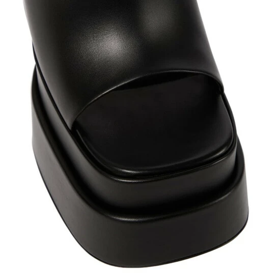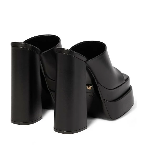 Reach new heights in fashion-forward footwear, courtesy of these Versace platform sandals. They boast chunky block heels and square toes in smooth leather for a striking silhouette.