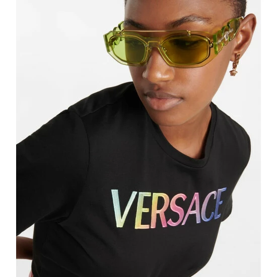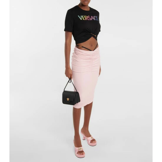 This T-shirt from Versace features the main design codes of the Italian house, including the logo lettering and Safety Pin hardware. Made from pure cotton, it’s gathered at the waist and has a cropped silhouette.