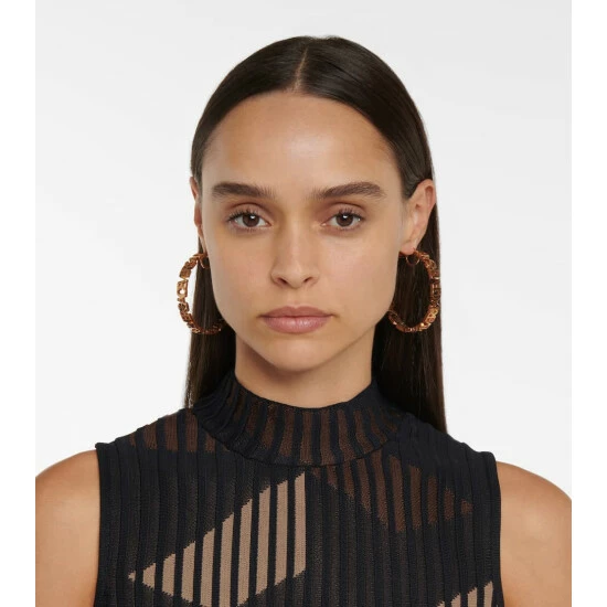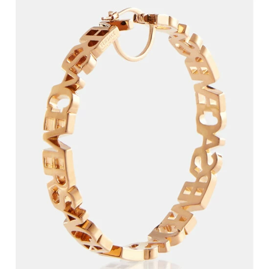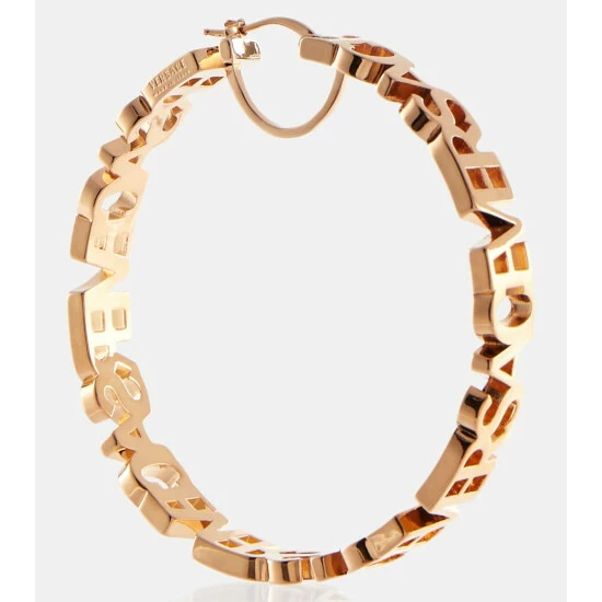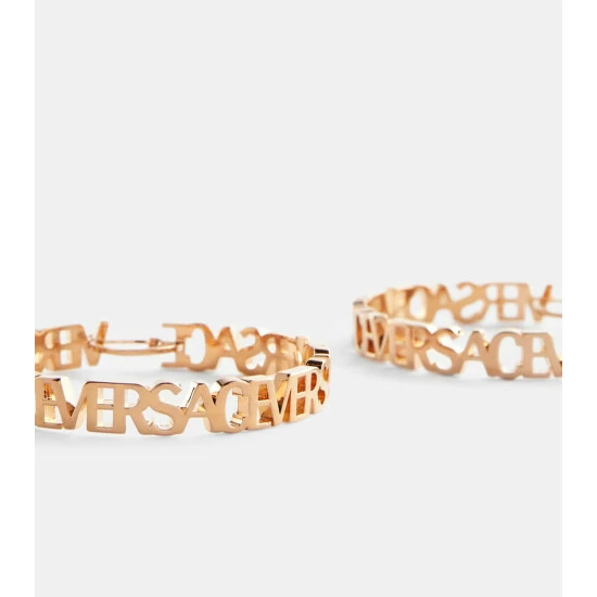 These gold-tone hoop earrings from Versace are constructed from logo lettering. Suitable for pierced ears, they secure with pin fastenings.