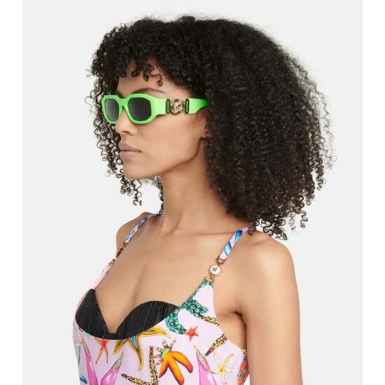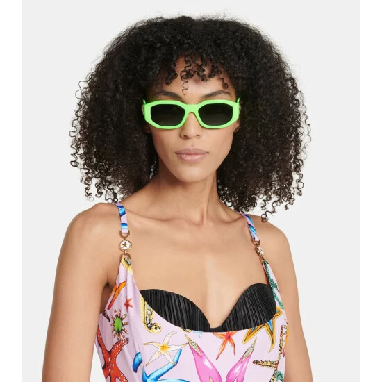 Fashion’s penchant for ’90s nostalgia sees no signs of waning when presented with these green Versace sunglasses. Made from acetate, they have a rectangular silhouette with logo-adorned temples and black tinted lenses.