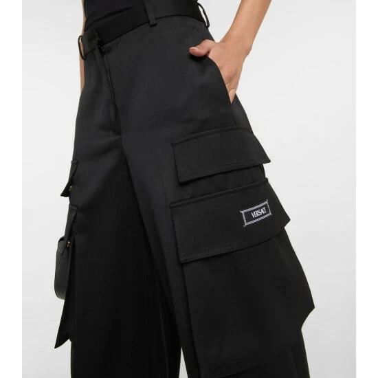 Tap into Versace’s utilitarian approach to luxury with these casual pants. Made from virgin wool gabardine, the low-rise design features wide legs, oversized cargo pockets, and a logo tag on one leg.