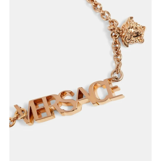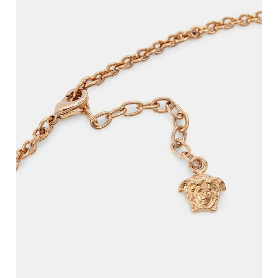 Logo lettering and Medusa charms are all that’s needed to mark this necklace as distinctively Versace. It’s made from hypoallergenic golden brass with classic round chain links.