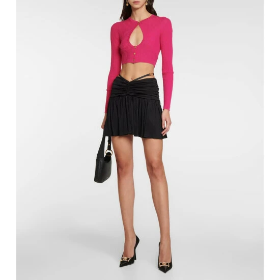 Adorned with crystal-embellished Medusa Biggie plagues, these pumps from Versace are the statement finish to party looks. The pointed-toe pair is made from lustrous satin and set atop flared heels.