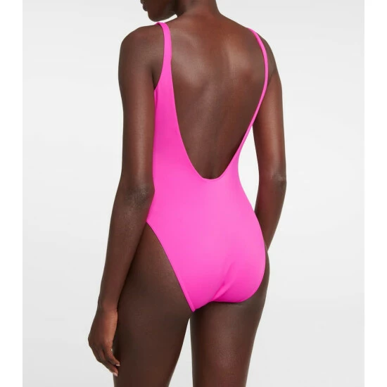 Add an ornate touch to your poolside edit with this pink high-leg swimsuit from Versace. Made from stretch-swim fabric that provides a sculpting fit, it’s accented by Medusa Biggie hardware at the straps.
