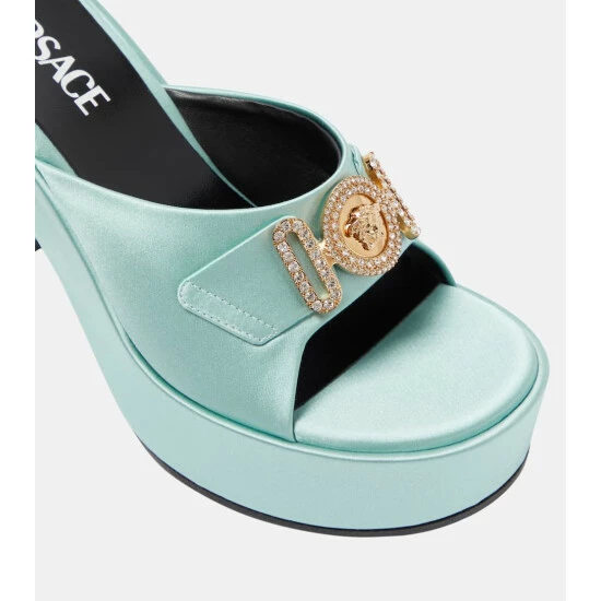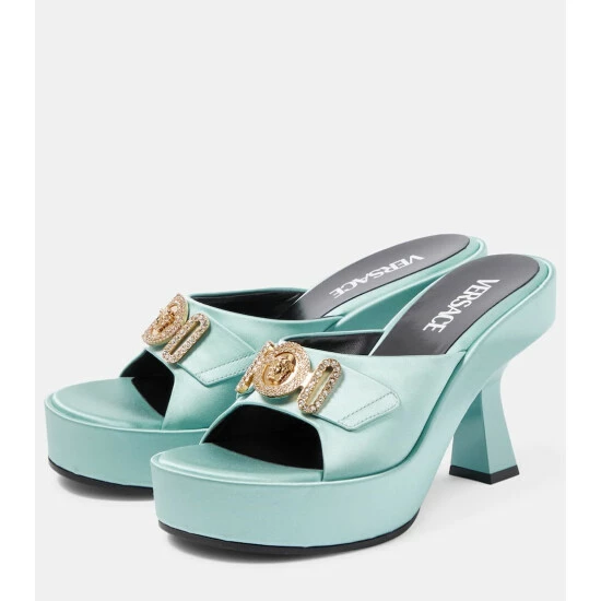 Versace’s Medusa Biggie mules are the It shoes of the season. Designed with embellished satin uppers and platform soles, they add a touch of sparkle to glamorous party looks.