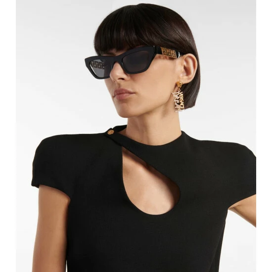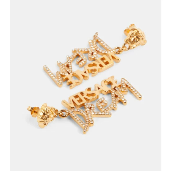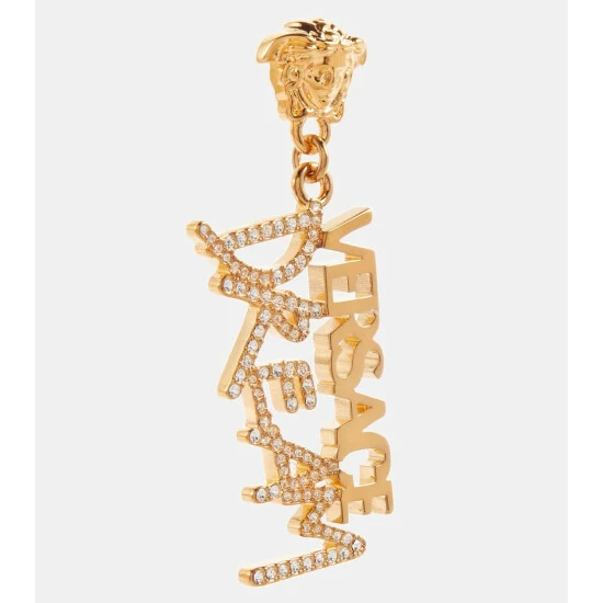 Show off your love for Versace with these crystal-embellished earrings. The gold-toned pair is shaped with the Versace Dream logo and a Medusa head motif.