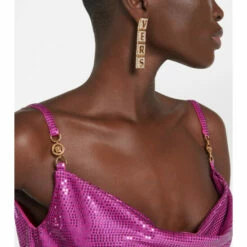 The focal point of this Versace necklace is the highly polished pendant: a detailed Medusa logo sitting atop a faux pearl. This gold-toned brass style has a lobster-clasp fastening.