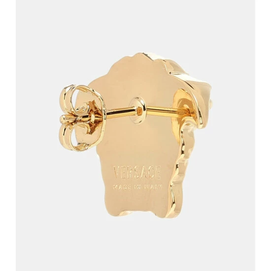 Showcasing a key motif in the Versace legacy, the Medusa earrings make a big statement. Made for pierced ears, they have a flat reverse so they sit flush against the ear and secure via butterfly-fastenings. Sweep your hair back to keep the petite pair in focus.