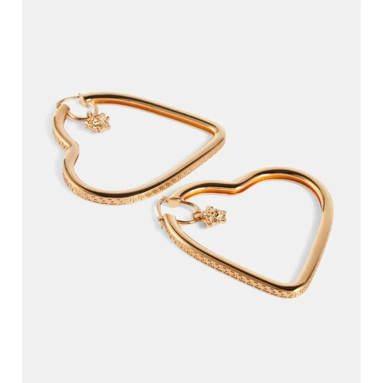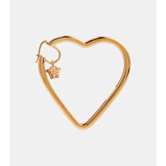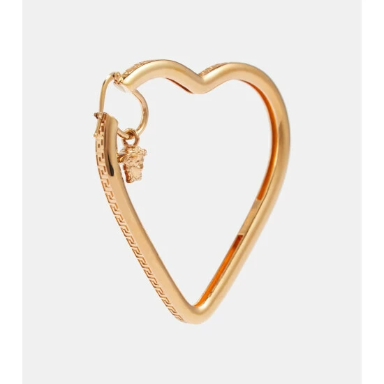 Made from gold-tone brass, these Versace hoop earrings come in the shape of a heart with the brand’s Greca motif engraved into the edges. The style is finished with a dangling Medusa charm at the clasp.