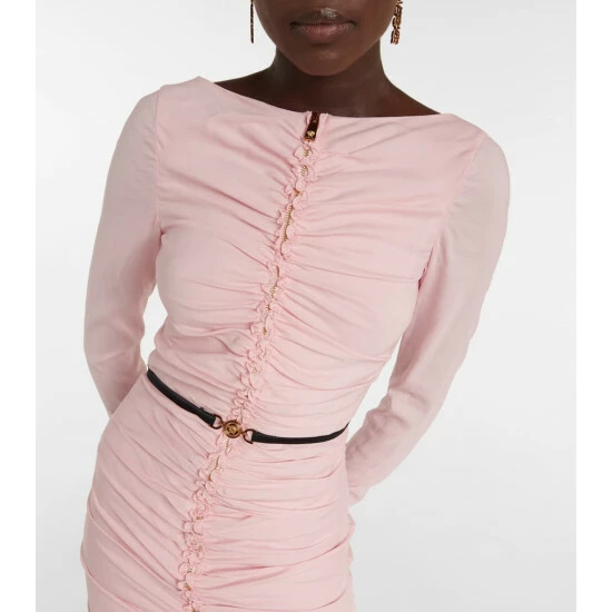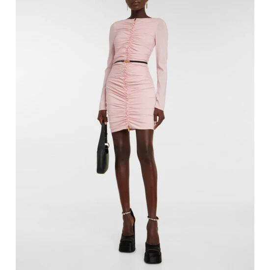 Versace’s Medusa minidress just begs for a night out. With a two-way zipper that’s framed with the most flattering ruching at the front, it cinches with a logo belt on a final feminine note.