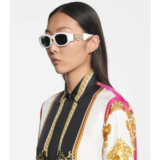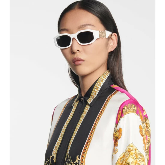 Bring a directional slant to your summer edit with these white Versace sunglasses. Made in Italy from acetate, they have a geometric silhouette with black tinted lenses and Medusa-embellished temples.