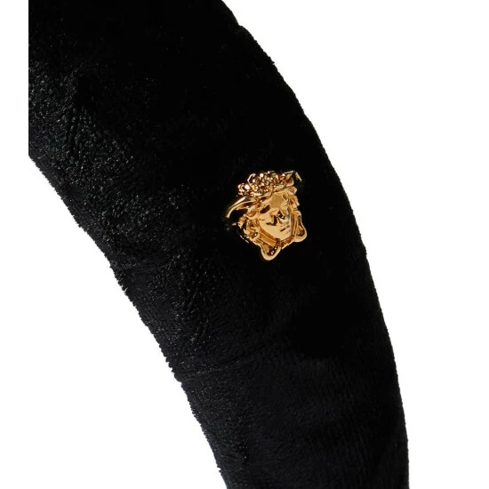 Versace makes festive accessorizing easy and effortless with this plush velvet headband. It’s made in Italy and features a padded silhouette adorned with a discreet golden Medusa charm.