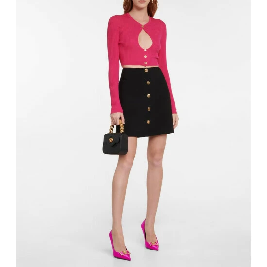 This miniskirt from Versace presents subtle references to the brand’s heritage with its gleaming Medusa buttons. It’s cut from wool with a flattering A-line silhouette.
