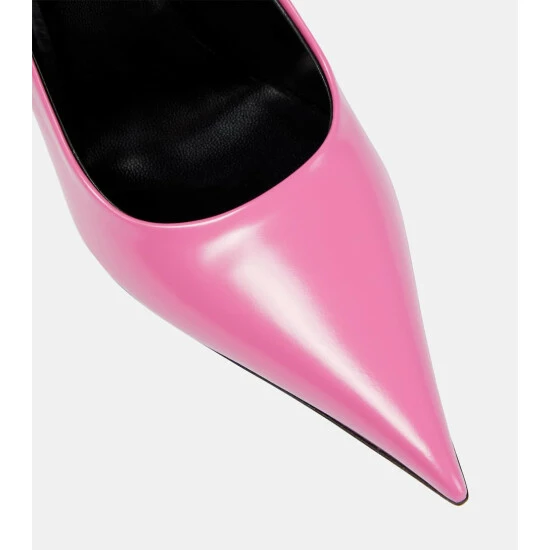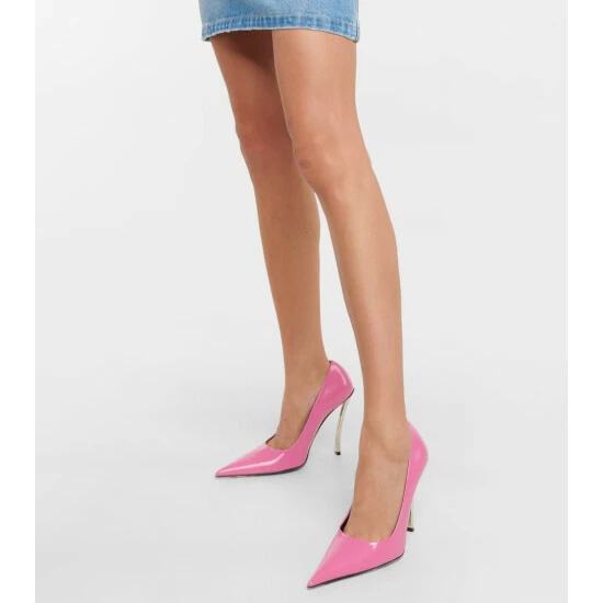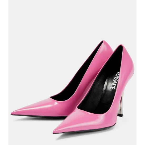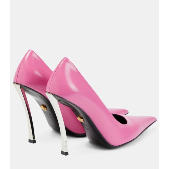Versace’s Pin-Point pumps are accented with curved, high stiletto heels. They’re made from leather and have elongated point toes.