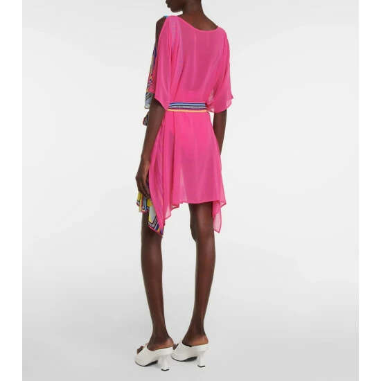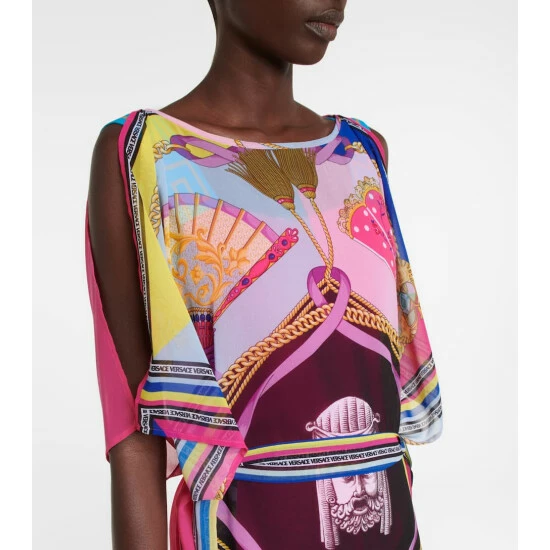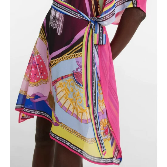 This kaftan from Versace is printed with the label’s iconic print. The flowing design has a boatneck and a self-tie waist.