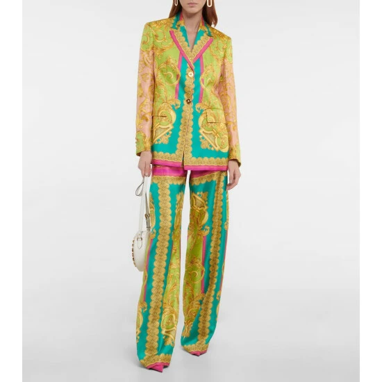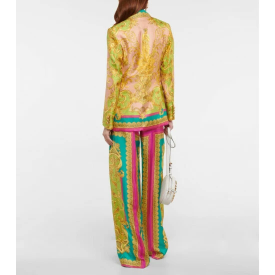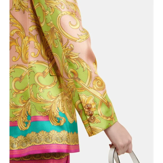 The vibrant Barocco Goddess print is something of a calling card for Versace. Fully lined, the single-breasted silk blazer has shoulder pads and a short vent.
