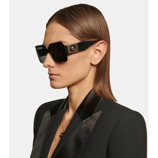 Bold is always better – a maxim that’s more than proved by these black Versace sunglasses. Crafted from acetate, they feature wide, squared frames and golden detailing that includes the fashion house’s famed Medusa head motif.