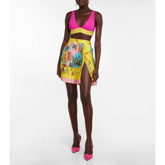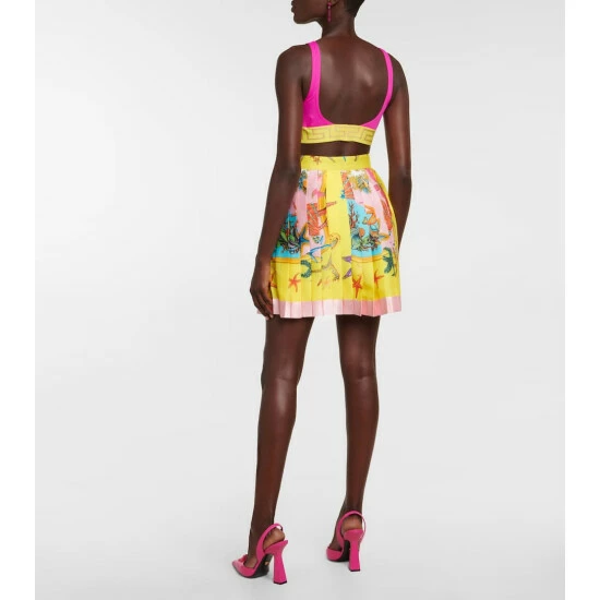 Summer in a skirt, this design is set apart by Versace’s exquisite Trésor de la Mer print. It sits at a flattering high-rise with a Medusa-embellished side button closure, and falls in elegant pleats.