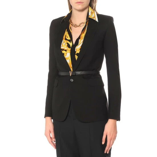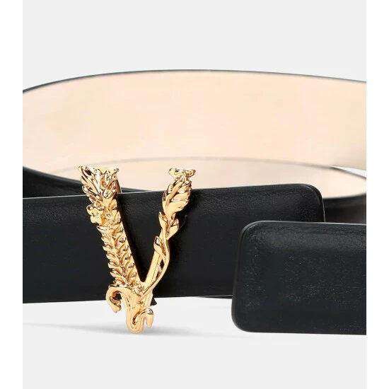 Whether you’re headed to an appointment or a rendezvous with friends, the Virtus belt from Versace makes a strong style statement. Made in Italy from smooth calf leather, it features an unmistakable V emblem in Baroque golden hardware. Timeless in black, it’ll go with just about anything in your wardrobe.