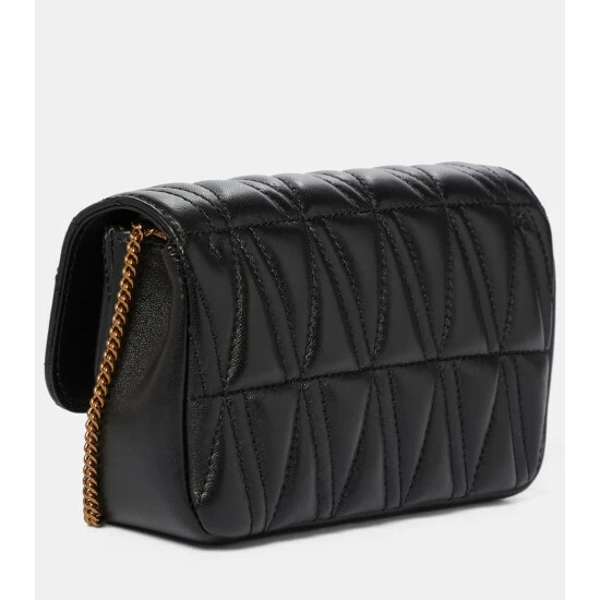 This black Virtus Small shoulder bag showcases a string of Versace’s signature codes. Made in Italy from V-quilted nappa leather, this compact piece has a magnetic, logo-embellished flap, which opens to reveal a Barocco-print interior fitted with three card slots. Detach the chain strap to style yours as an evening clutch.